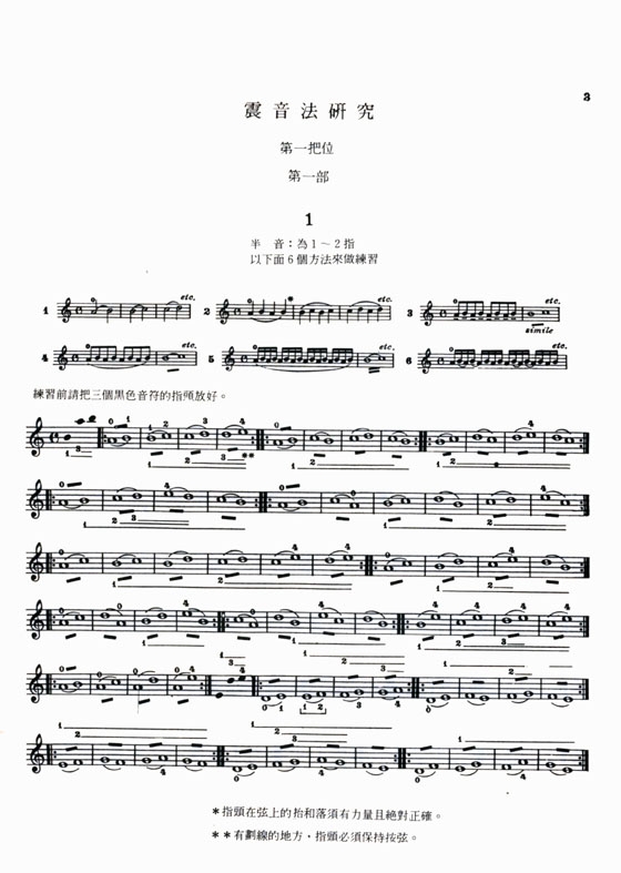 練習曲之前列的黑色音符,為當你要開始彈奏時,先把指頭作上述音保持按弦至少一分鐘,嘴裡讀譜,眼睛注視自己的手和指,進入練習曲時也須作保持按弦的姿勢,並注意譜上所要求須保持按持的指頭。