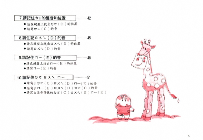 本書繪入許多可愛的插圖以增進學習符的興趣,並且由音符的唱法循序漸近的導入畫音符,讀者只要依照本書的順序,即可有流暢的成就感;祝福您的孩子對於認識五線譜更有興趣,能夠更快樂的學習音樂。