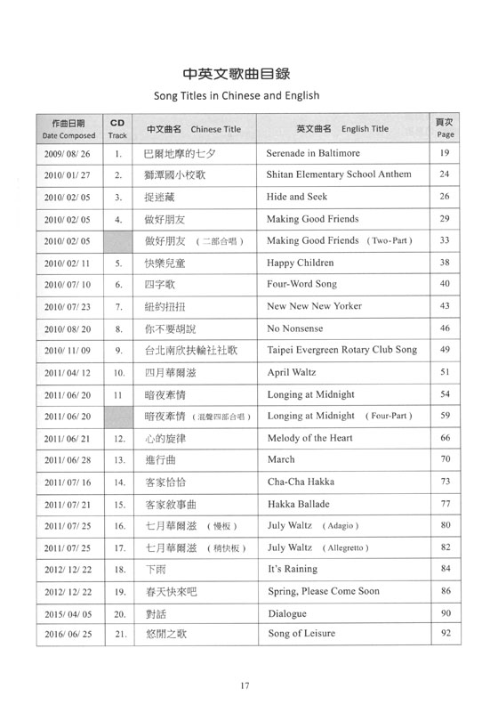 旅居海外的黃瑞循老師作詞作曲創作的歌曲、鋼琴演奏家、作曲家楊嵐茵編曲並錄製本書所附CD。