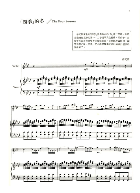精選各國民謠及古典樂曲改編為小提琴演奏曲。附樂曲解說。