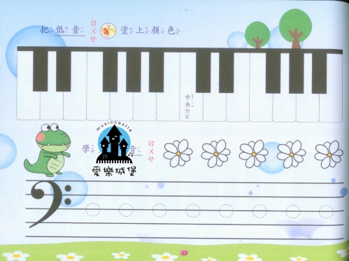 本冊內容編排由右手從中央ㄌㄚ音向上延伸至高音ㄙㄨㄛ,左手則由低音ㄇㄧ下行至低音ㄉㄛ,同時也加強音樂符號、拍號、調性、節奏、拍數、音程部份的學習認識,並延續第一冊用彩色印刷方式編排,以畫圈、塗色、連連看和則唱名貼紙的方式讓小朋友在半遊戲中學習樂理。