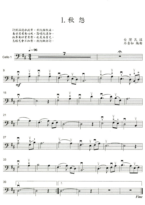 本系列作品特色在於精選28首50前前優良的台灣民謠主題為素材,加以改編成為雙大提琴演奏的合奏音樂,樂曲順序由簡單的調號開始循序漸進式的安排,具體的表達出台灣音樂之美;其次,為了能兼顧到能讓學生從小就開始培養合奏的經驗與能力,本CD的錄音擁有著極為生動且富音樂性的編曲,希望藉此建立學生對大提琴音樂的喜好及美感的培養,引導學習者懂得演奏及欣賞優雅的音樂,且採漸進式學習曲目,讓學習音樂成為生活中愉悅的享受與期待。