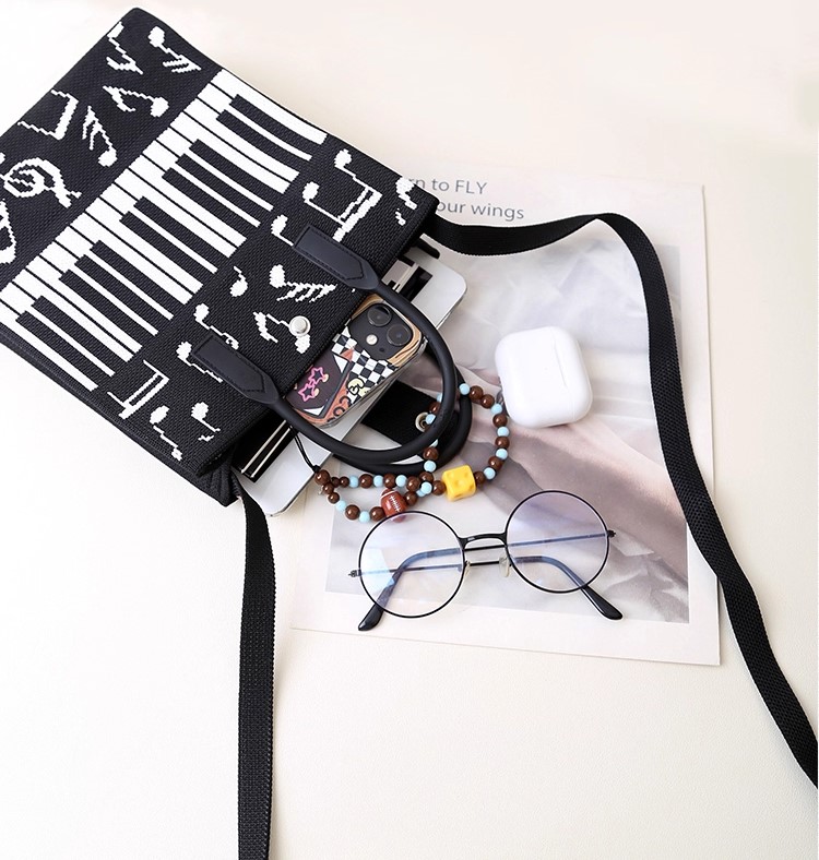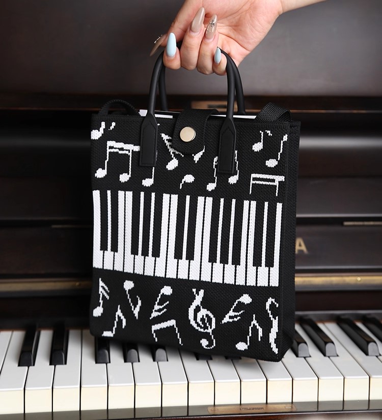 百搭鋼琴包 黑色款 音符手提斜揹兩用包 側背包 斜背包 手提包 外出包 化妝包 手機包 隨身攜帶小物 輕便美觀