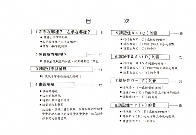 所以,在指導這個階段的孩子認識五線譜時,要使孩子產生興趣並且容易理解,而能夠自動自發的學習;作者等下了許多功夫,研究出來最有效的方法是運用音符貼紙及音符卡片來引起學習的興趣。