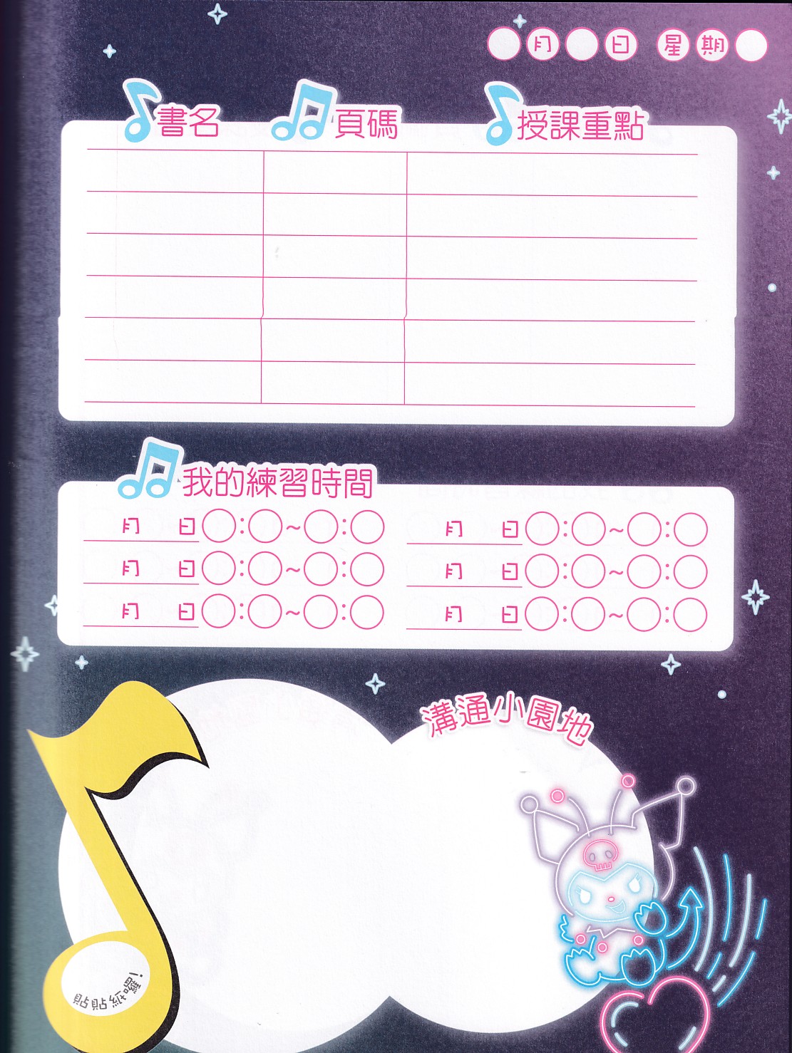 6.聯絡簿最後附有6頁空白五線譜